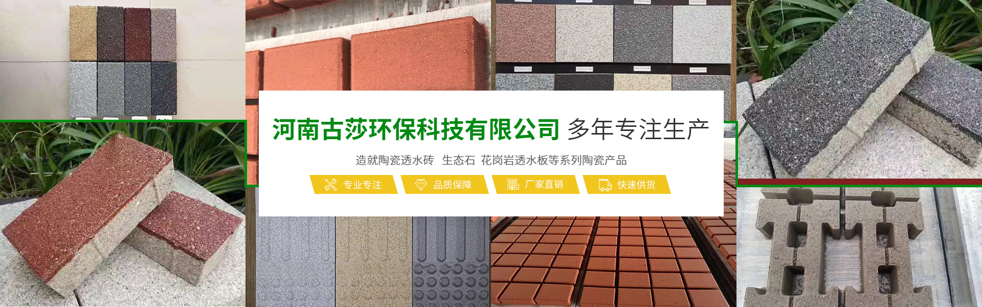 河南古莎環??萍加邢薰究傋溆诮煌屑~城市鄭州,是一家具備研發、生產、銷售能力為一體的綜合性現代化陶瓷企業。本公司專業生產經營生態陶瓷透水磚、生態鋪石、PC仿石材透水磚、PC仿石材景墻磚、普通透水磚、燒結磚等系列產品,完善的研發團隊,完善的生產流水線設備,打造完善的陶瓷企業。古莎環??萍棘F代化陶瓷企業是美化城市,改善生活環境質量的生態環保產品,可廣泛應用于公共建筑廣場、城市道路、公園、藝術景觀、廊道、房地產、別墅住宅小區、地鐵口、車站、高速公路服務區等。古莎環保科技在原有陶瓷企業基礎上,另拓展園林綠化、市政施工、瀝青包工包料施工、公路維修等業務板塊,專業培訓了一些園林綠化、市政施工技術人員,并有多年的施工養護經驗以及建筑工程經驗。保證市政工程施工質量以及園林綠化后期養護規范化、專業化。古莎環保科技所遵循的企業與品牌發展思路,是奠定在品質與產品應用之上。環保理念由我們共同倡導,理性思考,以推進步,感性溝通,以共建優越。古莎環??萍寂c大家真誠合作,攜手共進,為助力海綿城市建設,建筑高品質的綠色城市生活貢獻一份力量!